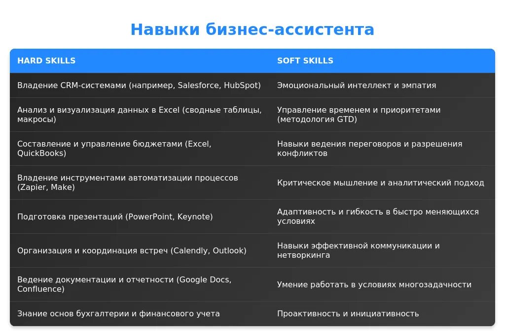 Анализ требований вакансии для профессии "бизнес-ассистент"