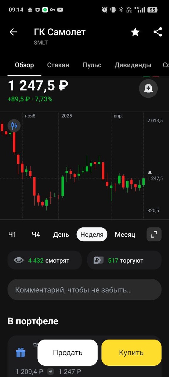 В ответ на пост Самолёт лучше рынка однозначно, но это только начало роста важный уровень 1250 , жду тест и дальнейшее движение вверх 🔼 Разрыв ⛓️💥 по всем фронтам произойдет при снижении ключевой ставки "опять же если это случится 6 июня " и главными бенефициарами "ракеты" будут застройщики и долговые бумаги