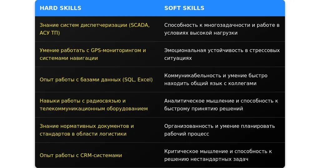 - Креативность (для диспетчера это не ключевое качество)