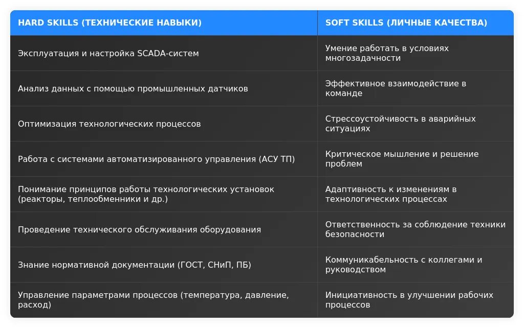 Технические навыки для оператора технологической установки