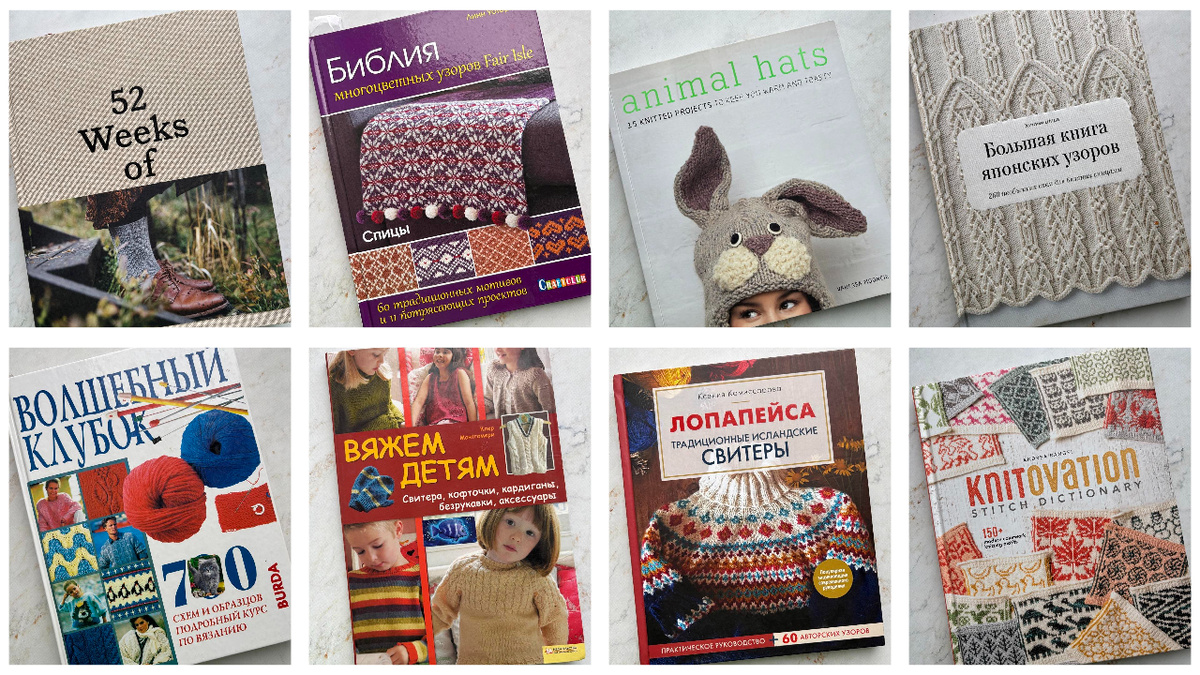 Очень люблю книги по вязанию. Учусь по ним, вдохновляюсь, черпаю идеи. Иногда покупаю сама, но многие мне подарили. Расскажу и покажу какие у меня есть и о чём каждая. Итак, поехали! Одна из первых книг, которую я сама себе купила на книжной барахолке в Киеве много много лет назад - книга "Вяжем детям" Клер Монтгомери. В ней я нашла очень много простых, симпатичных, а главное рабочих моделей. Вязала по ней разные кофточки ещё когда мои старшие девчонки были детьми. Для меня книга стала находкой еще и потому, что в те времена интернет конечно уже был, но без инстаграма, пинтереста и других подобных ресурсов. Если ты хочешь связать что-то детям, но не умеешь - учись по зачастую криповым журналам. Как жаль, что тогда и смартфонов не было - ни одной фотки тех времен. Если бы мне предложили написать книгу с детскими моделями, она была бы такой же (да, иногда заигрываю с этой мыслью). А вот две книги, по которым я училась вязать свои первые узоры. А ещё они памятны мне тем, что их мне на