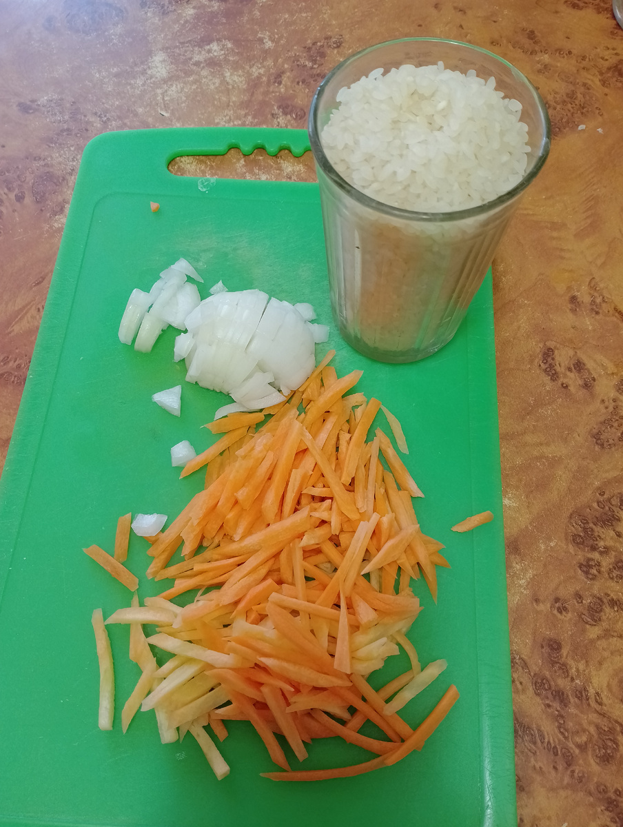 Нам понадобится: Рис 1 стакан(2 стакана воды) Мясо 400 гр( у меня свинина) Одна луковица Одна большая 🥕 морковь Масло растительное 70 гр Чеснок 5 зубчиков Зира несколько зернн Морковь порезать соломкой В казане разогреть масло и выложить мясо. Посолить и пусть тушится. Как начнет поджариваться добавить лук и морковь. Хорошо поджарить до золотистого цвета и добавляем рис один стакан, ( предварительно промытый раза три) и добавим два стакана воды , и чеснок не очищаем его так он все вкусы держит,немного подсолить щепотку.( Рис впитывает всю соль поэтому солить до вкуса лучше когда приготовиться.)Как хорошо закипит убавляем 🔥 огонь на самый минимальный и через 15 минут выключаем. Добавим зиру. Пусть постоит он дойдет до готовности .