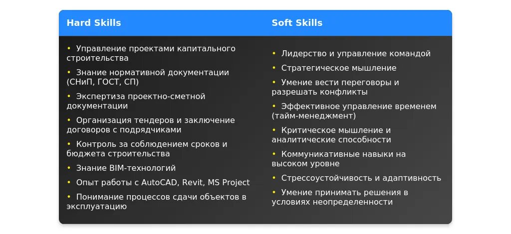 Ключевые фразы для вакансий: "управление проектами", "контроль бюджета", "координация подрядчиков", "обеспечение соблюдения сроков".