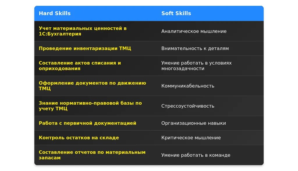 При анализе вакансии для бухгалтера материальной части важно выделить ключевые требования, разделяя их на обязательные и желательные. Обращайте внимание на наличие профессиональных стандартов, таких как знание бухгалтерских программ (1С, SAP), опыт работы с материальными активами, знание законодательства в области учета. Скрытые требования можно выявить через анализ корпоративной культуры, упоминание командной работы или гибкости в условиях многозадачности.