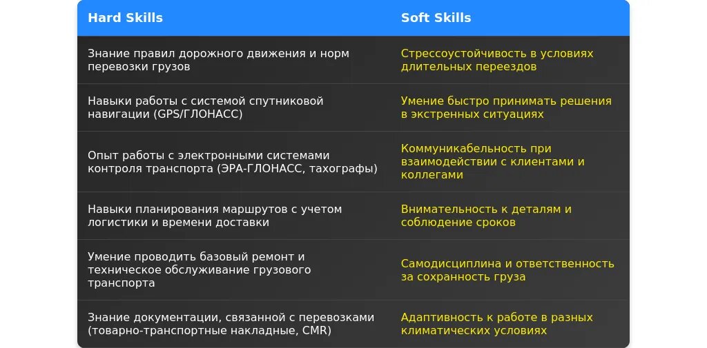 Технические навыки для водителя грузового транспорта