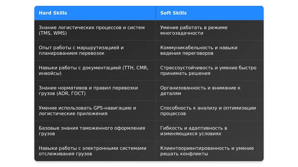 - Навыки работы с IoT для мониторинга состояния грузов.