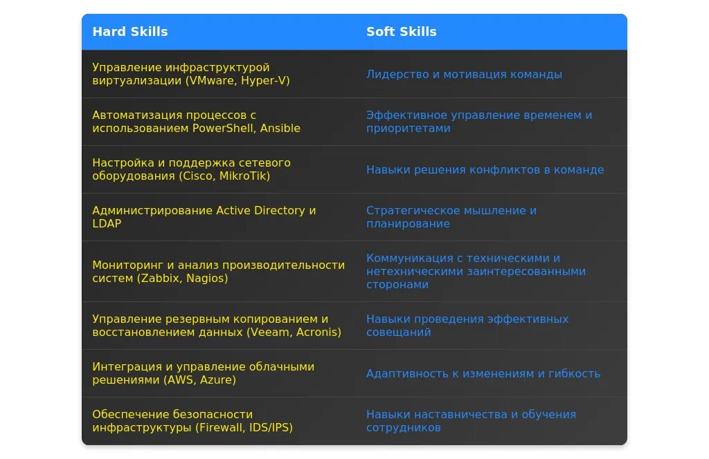 Ключевые слова: руководитель, системный администратор, IT-инфраструктура, команда, менеджер, Team Lead, IT-операции.