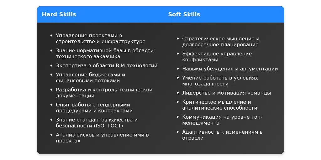 После адаптации: "Знание строительных норм и правил (СНиП, СП), опыт работы с государственными заказчиками."