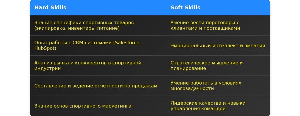 - Ключевые навыки, связанные с продажами и спортивными товарами.