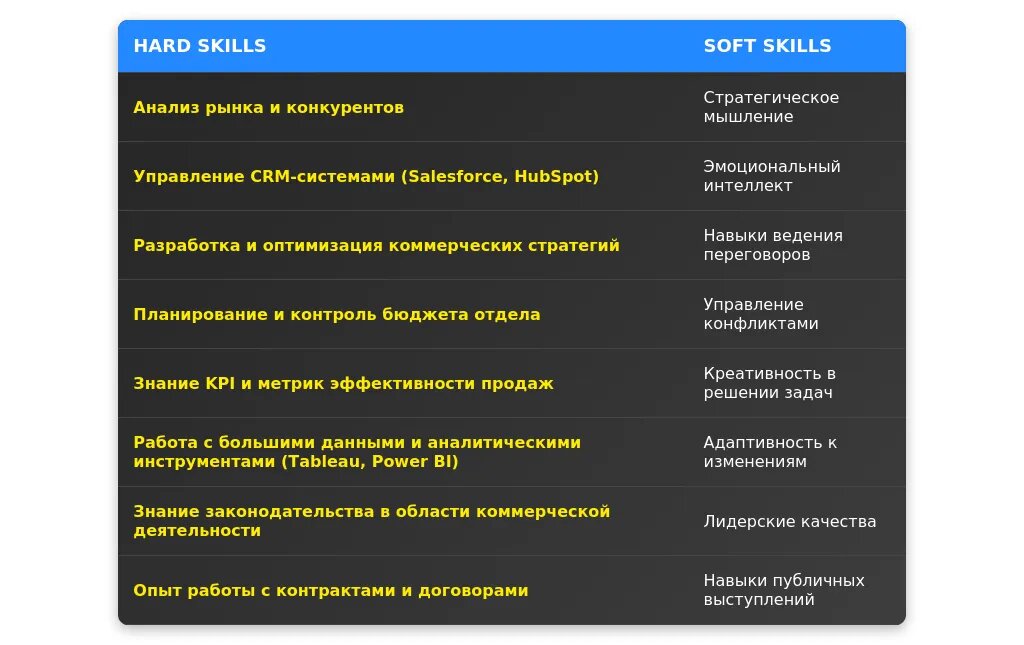 - Стратегическое мышление: разработка долгосрочных планов развития отдела.