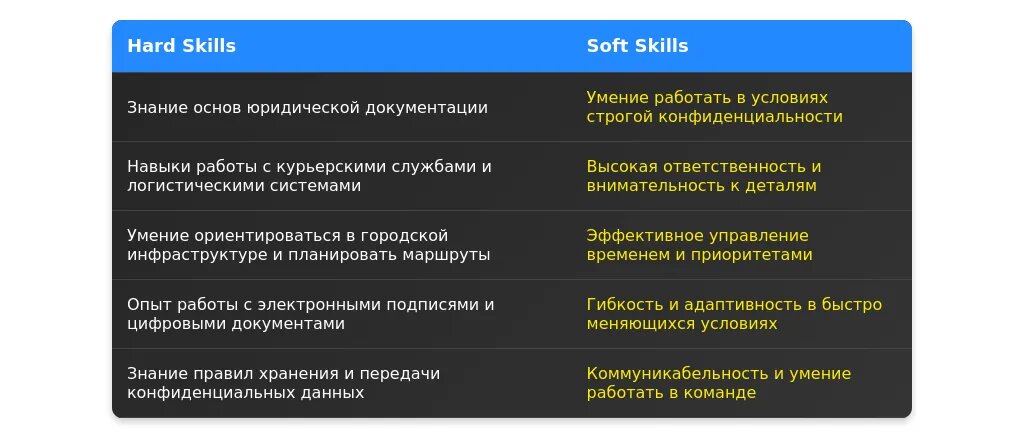 При анализе вакансии для курьера в юридическую компанию важно выделить ключевые требования, которые работодатель указывает в описании. В первую очередь обратите внимание на обязательные требования: наличие водительских прав, опыт работы курьером, знание города и умение работать с документами. Желательные требования могут включать навыки работы с CRM-системами, знание основ юридической документации или опыт работы в юридической сфере.