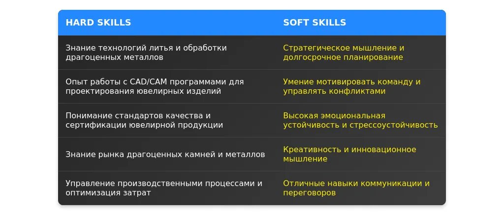 Анализ вакансии для профессии "начальник ювелирного производства"