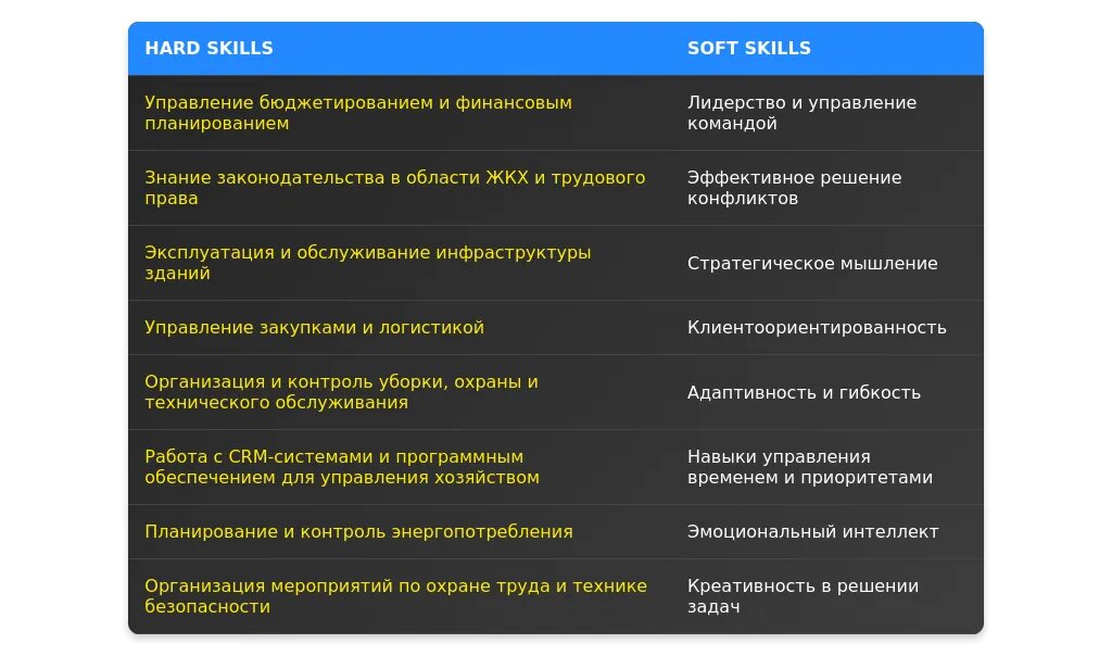 Технические навыки для начальника АХЧ