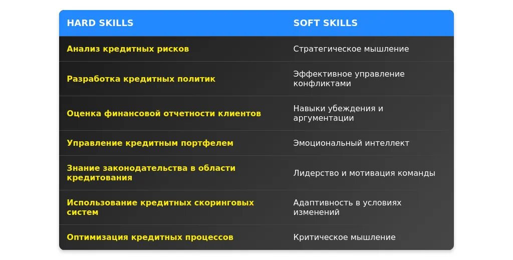 После: "Управление командой, анализ кредитных рисков, работа с CRM-системами, знание SQL."