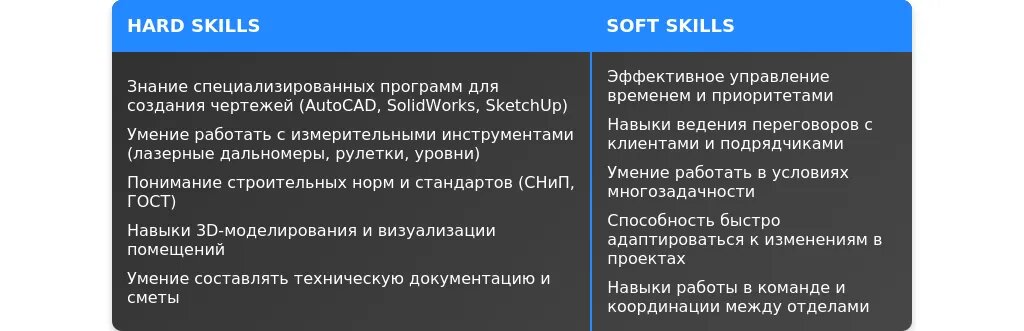 Используйте ключевые слова, которые подчеркивают вашу специализацию и опыт: замеры, планирование, строительство, техническая документация, контроль качества, проектирование.