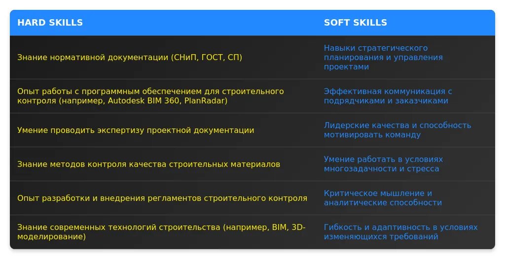 Анализ требований вакансии для руководителя службы строительного контроля