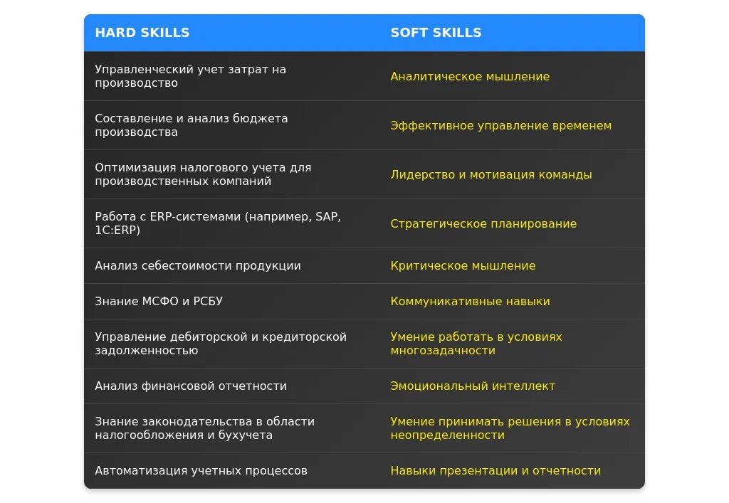 Анализ требований вакансий для профессии "заместитель главного бухгалтера по производству"