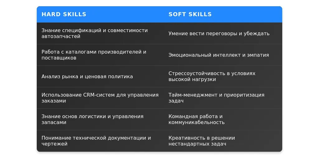 После адаптации: "Навыки продаж автозапчастей, работа с клиентами в условиях многозадачности, аналитика данных в Excel".