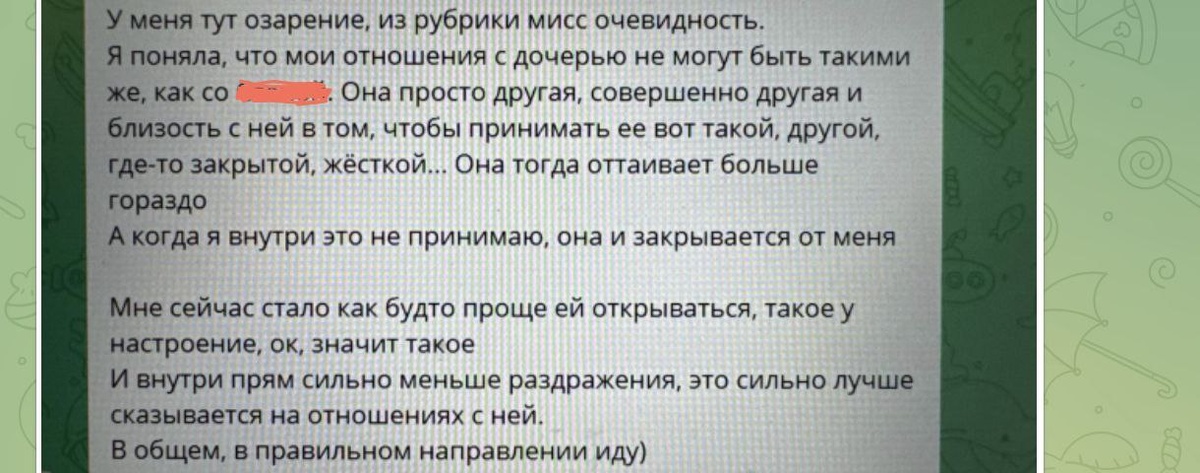 Путь длинною в жизнь можно пройти быстрее... От таких как этот #GSR_результаты_клиентов у меня слезы наворачиваются. Я не знаю, как бы сложилась здесь жизнь без выбора идти в долгую работу про детей. Я не знаю, как сложится дальше этот путь, куда он приведет героев. Но то, что мать смогла увидеть и дать внутри себя место индивидуальности ребенка, его особенностям это просто полный восторг! Не бороться, не прогибать под себя "потому что взрослый и знаешь как надо и лучше", не конкурировать, не прятать свою слабость за громкостью голоса. А просто увидеть, что твое дитё это не ты, и что все разные!!! даже те, кто так похож на тебя Пусть это случается с нами хоть когда, это никогда не будет рано или поздно. Главное, чтобы это случилось с нами пока мы живём эту жизнь ❤️