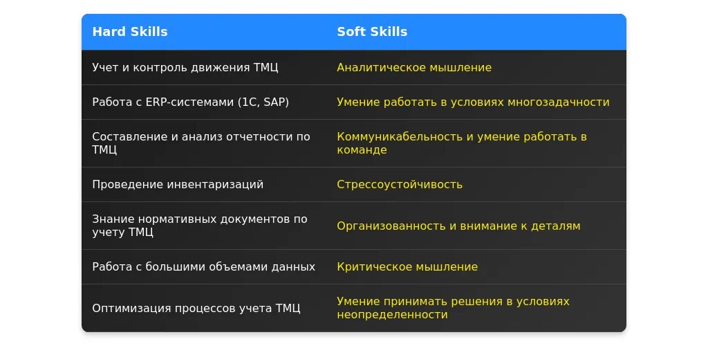 - Базовые знания учета ТМЦ.