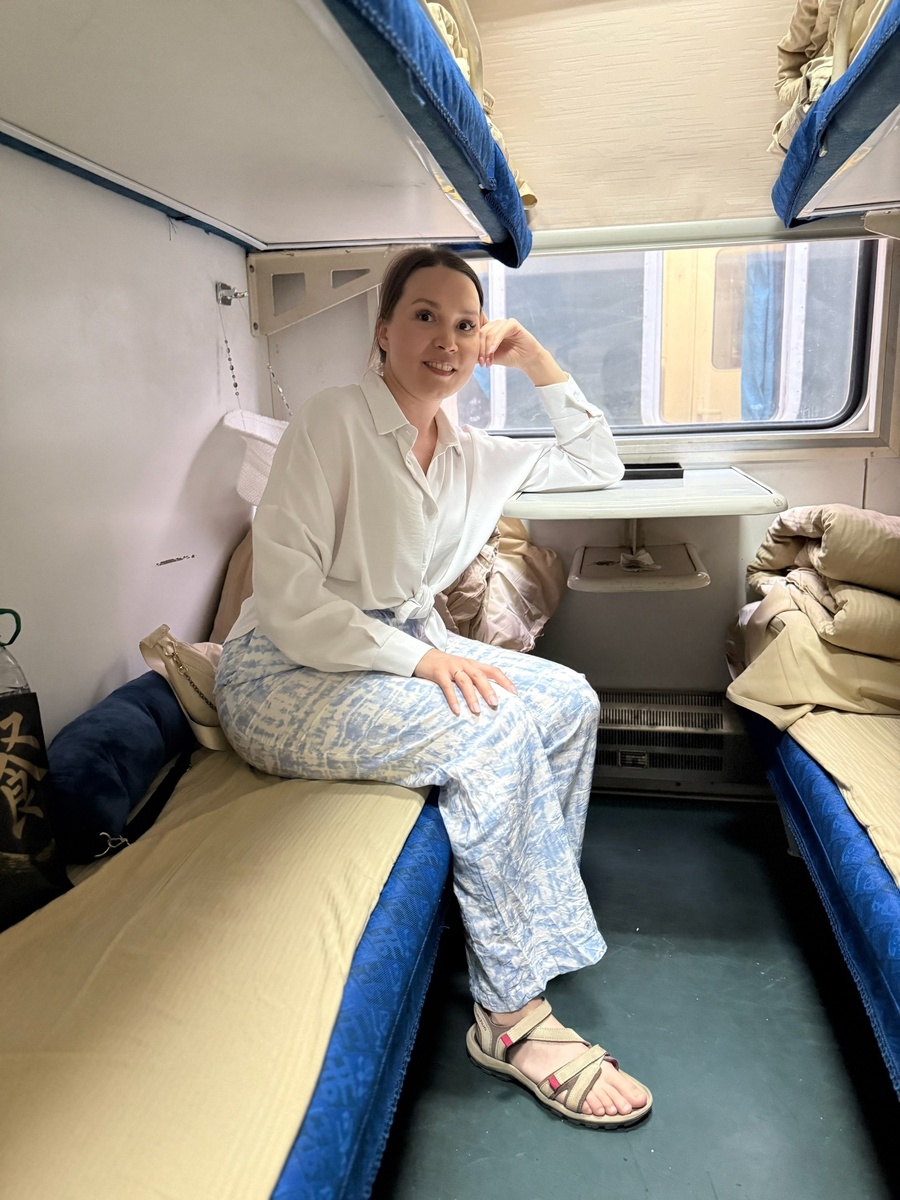 Как выглядят поезда T-класса в Китае. Сразу скажу, что в Поднебесной несколько видов поездов. Есть и скоростные, но расскажу о них позже. Сейчас речь о тех, что очень напоминают привычные нам российские плацкарты. Но отличия кое-какие всё же есть. ✅ Здесь 3 полки, и все 3 предназначены для людей, а не для багажа! На всех матрасы и постельное бельё. ✅ Боковых мест для сна вообще нет как таковых! Только откидные сидения без спинок и узкие столы. Они предназначены для людей, которые едут на 2 и 3 полке, чтобы им можно было не только лежать, но и сидеть, есть и т.д. ✅ Багажная полка одна, находится она как раз сбоку. ✅ Постельное бельё в плацкарте сразу застелено. И непонятно, спал ни на нём кто-то до вас или нет! При нас люди заходили, выходили, заходили другие пассажиры и занимали места. Но постельное бельё никто ни разу не менял! ✅ Наволочки отдельной, как у нас в России, нет. Вместо этого в длинной простыне есть карман для подушки. Не очень удобно, если любишь менять положение подуш П