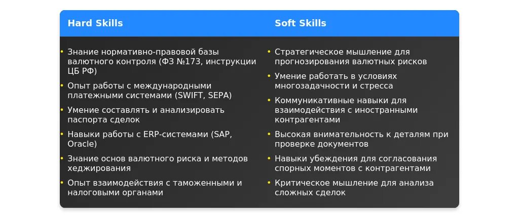 - актуальные требования работодателей и список востребованных навыков в сфере валютного контроля