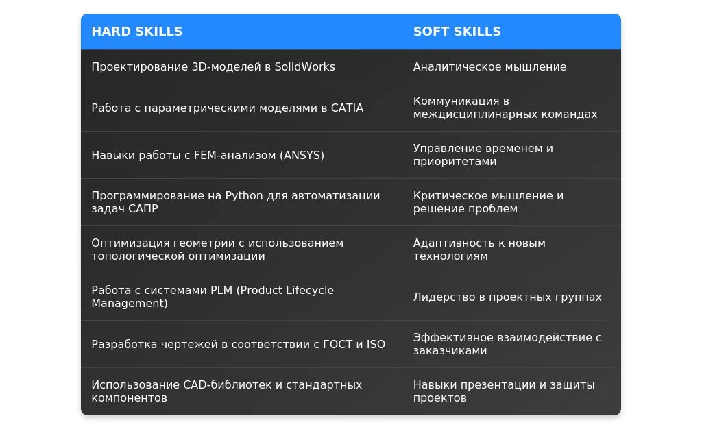 До адаптации: "AutoCAD, SolidWorks, коммуникативные навыки."