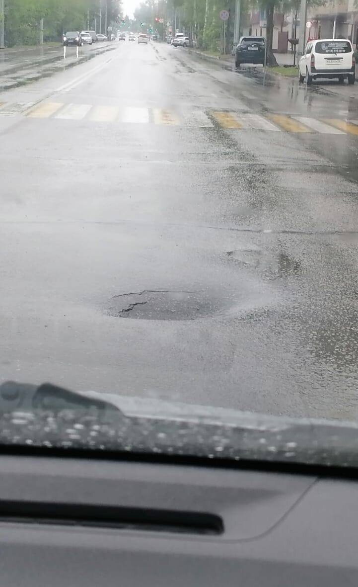 На пересечении улиц Ленина и Кручинина в дорожном покрытии на проезжей части, асфальт просел. Будьте осторожны находясь за рулем.