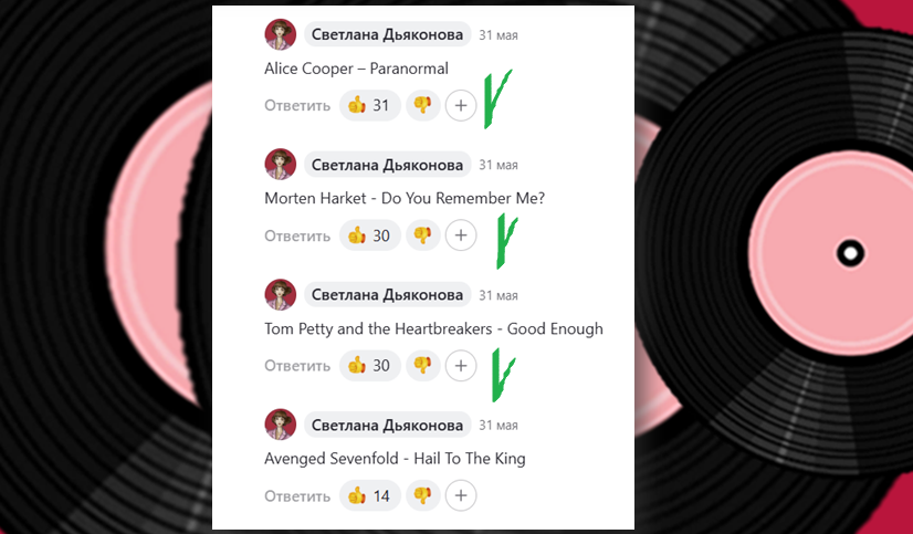 Сегодня мы подводим итоги первого тура конкурса зарубежных песен, родившихся с 2010 года по наше время, и начинаем второй. Здравствуйте! Мы читаем/слушаем подборку, затем заходим в комментарии (настраиваем их на "сначала старые") и ставим лайки тем песням, которые понравились больше. Дизлайки песням в голосовалке у нас ставить не принято. Давайте посмотрим, какие песни нам придётся слушать ещё раз. Композиции-победительницы из 1-7 групп: Из 8-ой группы сразу три песни вышли во второй тур: Из 9-й группы ни одна песня, к сожалению, не набрала 30 голосов. В 10-й группе одна композиция поборется дальше за победу: Результаты голосования на скринах (листайте галерею). Итак, во втором туре у нас 15 песен. Три из них станут победительницами. Это те, которые наберут больше баллов, чем остальные. Второй тур, первая группа песен. Слушаем и выбираем. Слово прекрасным девушкам. Ирина Н.: Голос отдаю песне Smoke в исполнении Alex Who? - певицы с необыкновенно красивым голосом, настоящая же