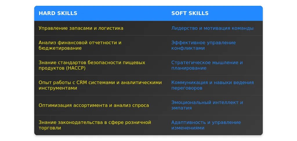 При анализе вакансии для должности директора магазина продуктов питания важно выделить ключевые требования, разделяя их на обязательные и желательные. Обязательные требования обычно включают опыт управления, знание специфики продуктового ритейла и навыки работы с персоналом. Желательные требования могут касаться владения специализированными программами учета или опыта внедрения маркетинговых стратегий.