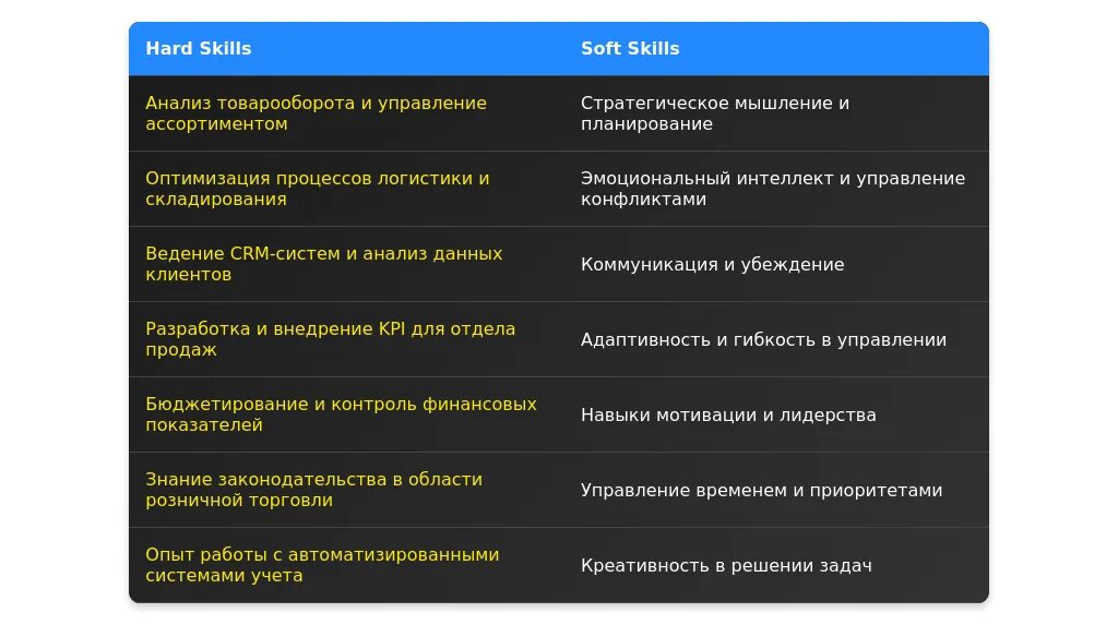 При анализе вакансии важно выделить ключевые требования, которые работодатель считает обязательными. Это могут быть опыт работы в розничной торговле, управление командой, достижение планов продаж, знание CRM-систем и навыки аналитики. Желательные требования, такие как знание иностранного языка или опыт работы с крупными брендами, также важны, но их можно рассмотреть как дополнительные преимущества.