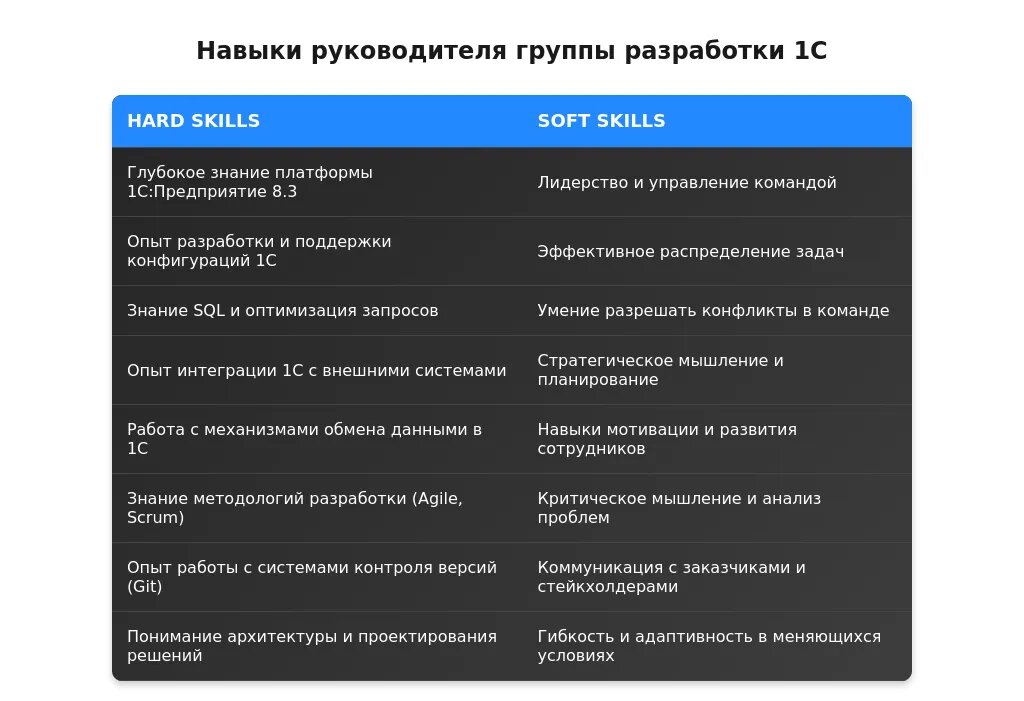 В этой статье вы найдете всю необходимую информацию для составления профессионального резюме руководителя группы разработки 1С, включая: