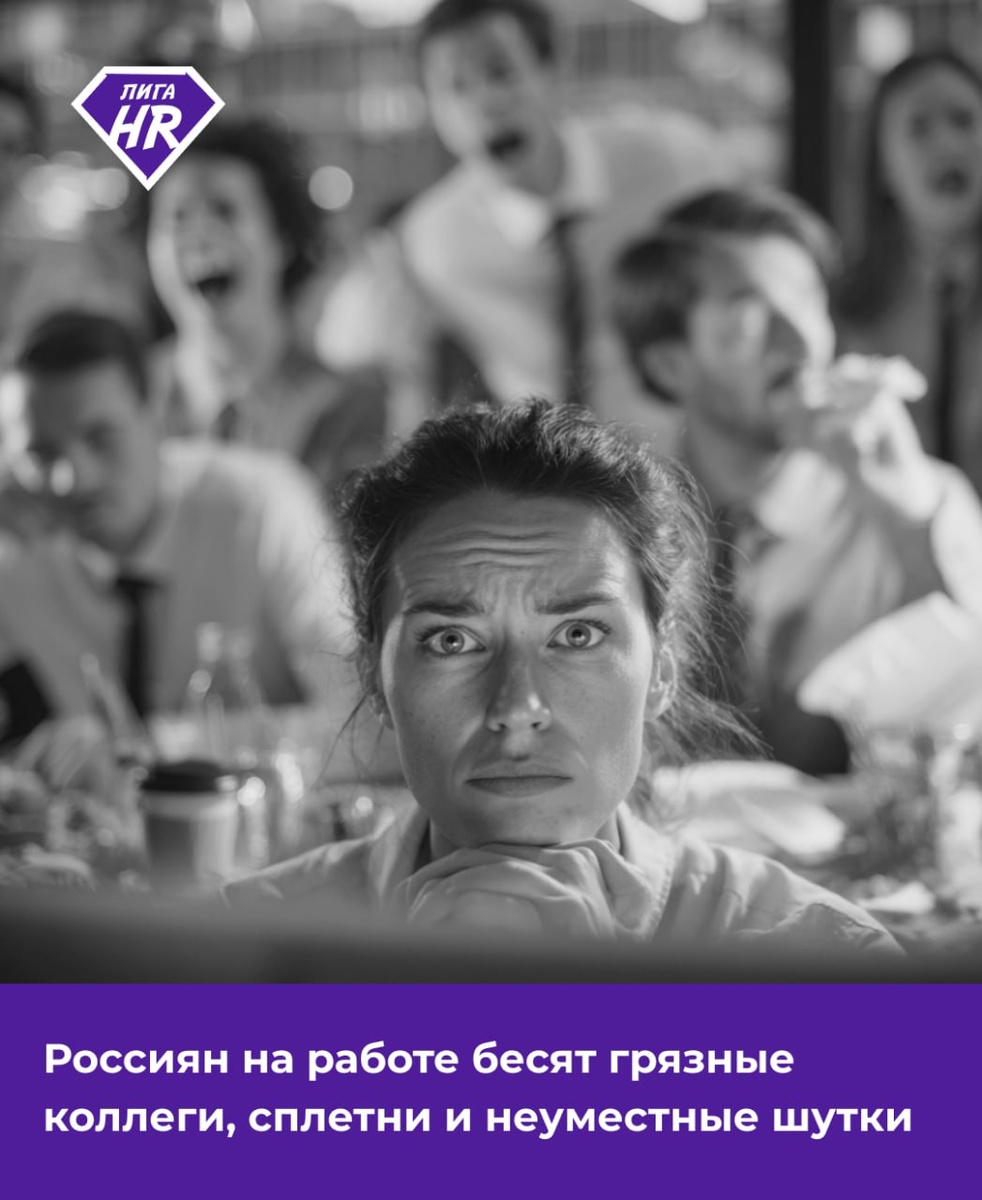 Россиян на работе бесят грязные коллеги, сплетни и неуместные шутки 🤥 Неопрятные коллеги оказались в топе факторов, которые больше всего бесят россиян на работе. Таковы выводы исследования онлайн-сервиса для управления бизнесом «Битрикс24», с которыми ознакомилась «Газета.Ru». Итак, что больше всего раздражает россиян на работе: ♦️ почти половину опрошенных нервируют сплетни и доносы; ♦️ около 40% респондентов пожаловались на плохую гигиену, неопрятность коллег, бардак на рабочих местах; ♦️ 35% признались, что не выносят громкий смех, неуместные шутки и болтовню; ♦️ каждого третьего (30%) бесят коллеги, которые едят и курят вне специально отведенных для этого зон; ♦️ 25% раздражает излишний оптимизм или пессимизм членов команды. Каждого пятого бесит излишняя тактильность коллег – например, частые попытки обнять. Столько же внесли в список раздражающих на работе факторов флирт и неуместную фамильярность. Подобные привычки коллег не просто вызывают раздражение, но и снижают продукт