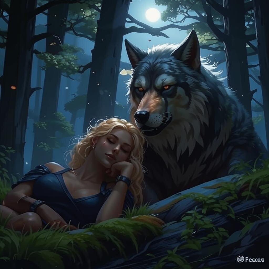 Волк прижался ко мне спиной, согревая своим теплом и быстро уснул. Он тихонько посапывал, во сне дергая лапой, словно преследовал добычу в бескрайних лесах. Я прикрыла глаза, вслушиваясь в ночные звуки: стрекот сверчков, шорох листвы, уханье совы вдалеке. Лес жил своей жизнью, загадочной и непостижимой для человека.