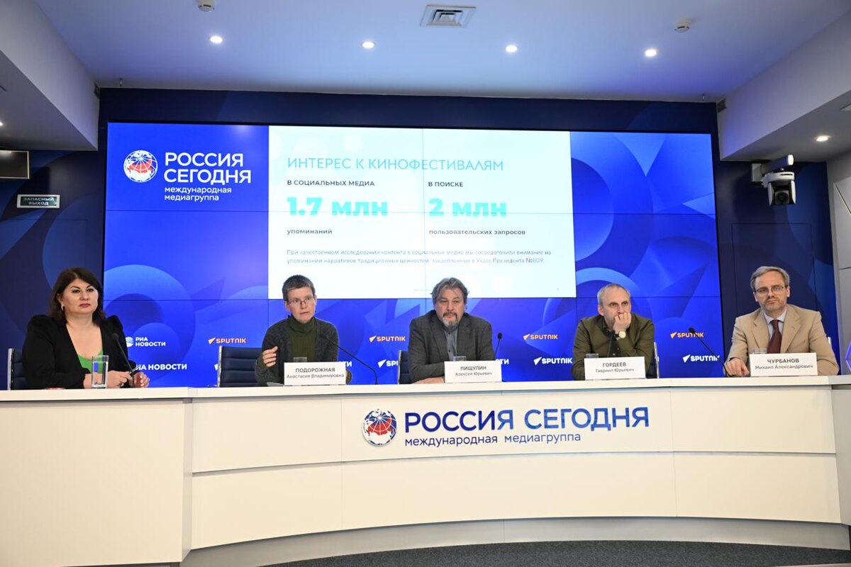 📕 2 июня 2025 года в Международном мультимедийном пресс-центре МИА «Россия сегодня» состоялась пресс-конференция, посвящённая анализу присутствия в публичном информационном пространстве РФ международных кинофестивалей из официального документа «Об утверждении перечня проводимых на территории Российской Федерации международных кинофестивалей на 2025 год», опубликованного на сайте Министерства культуры РФ. Встреча прошла в рамках информационно-просветительского проекта «Социальный навигатор». В ней приняли участие: Гавриил Гордеев, генеральный продюсер Okko, президент Международного фестиваля детского, семейного кино и анимации «Медвежонок»; Михаил Чурбанов, председатель совета Фонда развития культуры и кинематографии «Страна»; Алексей Пищулин, режиссёр-документалист, генеральный директор АНО «Мир Музея»; Анастасия Подорожная, IT-директор «Мира Музея», ведущий аналитик компании Brand Analytics. В рамках пресс-конференции был представлен топ-10 упоминаемых в социальных сетях Рунета меж
