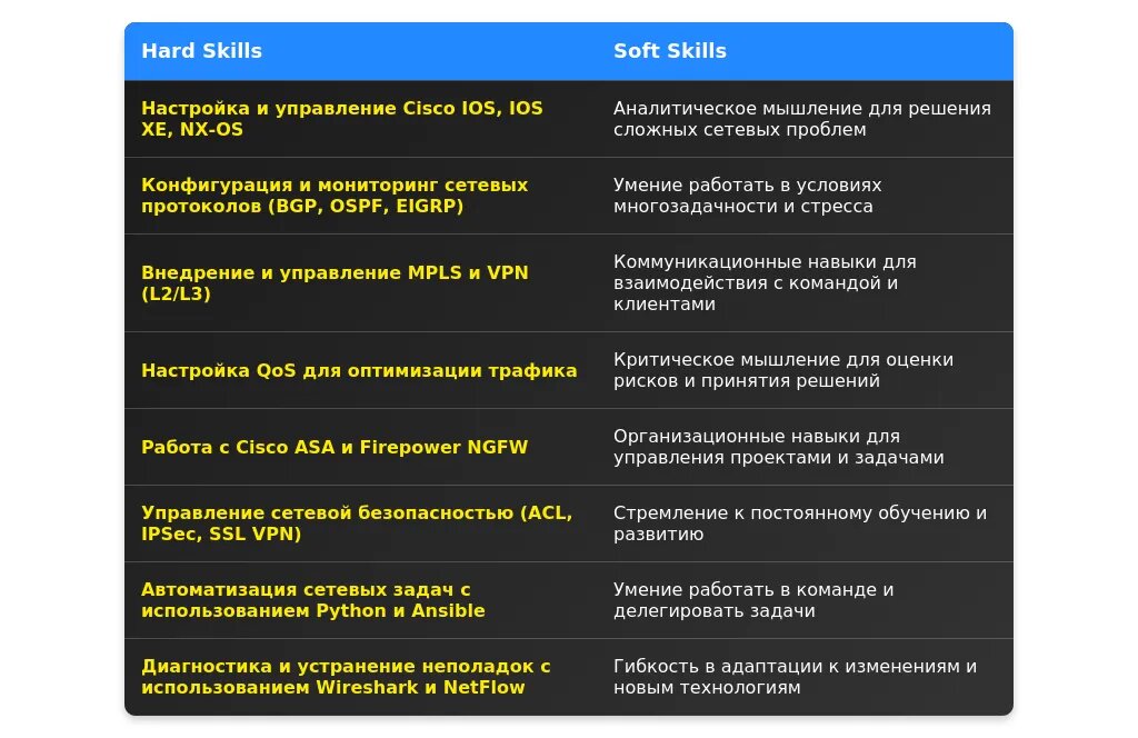 Ключевые слова для заголовка: Cisco, сетевой инженер, системный администратор, инфраструктура, сетевая безопасность, настройка сетей, поддержка.
