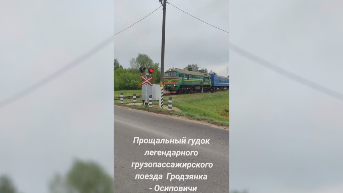 Жители агрогородка Гродзянка в Могилёвской области с грустью проводили в последний рейс грузопассажирский поезд, следовавший по маршруту Гродзянка — Осиповичи. Поезд «легендарного» маршрута прекратил своё существование 27 мая. На память местные жители сняли на видео его «прощальный гудок». На опубликованных кадрах видно, как тепловоз с одним пассажирским вагоном медленно проходит мимо железнодорожного переезда. Этот короткий поезд для многих жителей небольшого населённого пункта, очевидно, был не просто транспортом, а частью местной истории и повседневной жизни. Маршрут отличался тем, что пассажирский вагон часто шел бок о бок с товарными хопперами или топливными цистернами — это был единственный такой поезд в Беларуси. ... Продолжение читайте тут. (Или тут.)