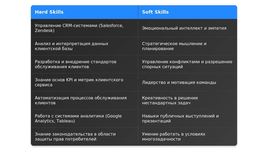 Анализ требований вакансии для профессии "руководитель направления клиентского сервиса"