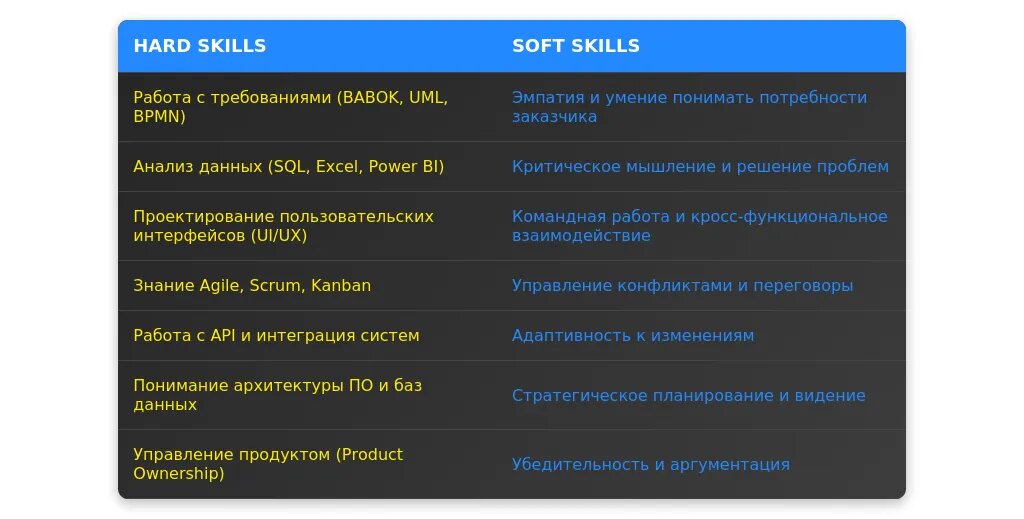 Ключевые фразы: "Управление требованиями", "Анализ данных", "Работа в Agile-командах", "Документирование процессов".