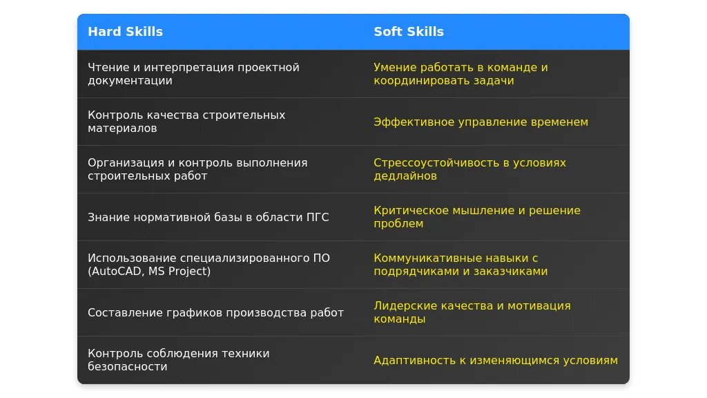Анализ требований вакансии для профессии "производитель работ ПГС"