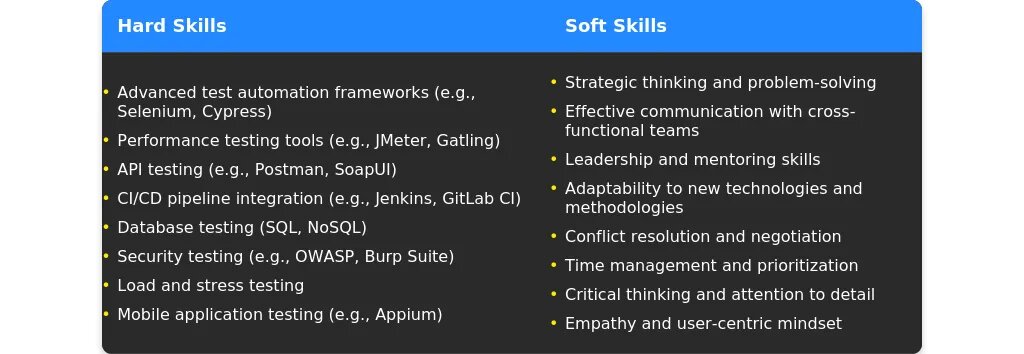 - Перечисление навыков senior QA.