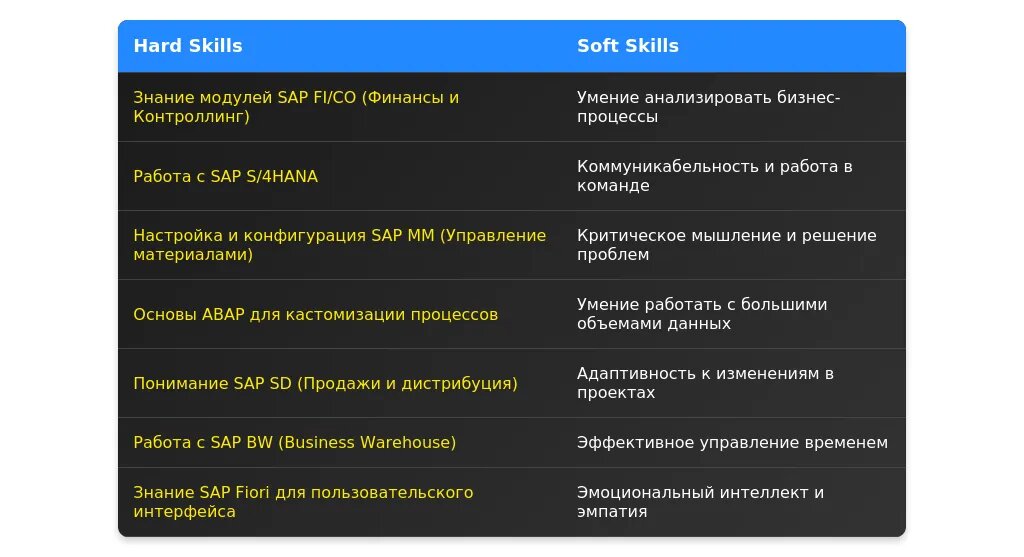 - Релевантность: Указаны ли ключевые навыки для SAP?