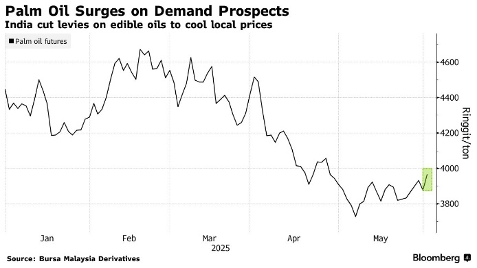 Стоимость пальмового масла достигла максимального значения за последние три недели на фоне ожиданий роста спроса после того, как Индия, крупнейший покупатель, снизила импортные пошлины.