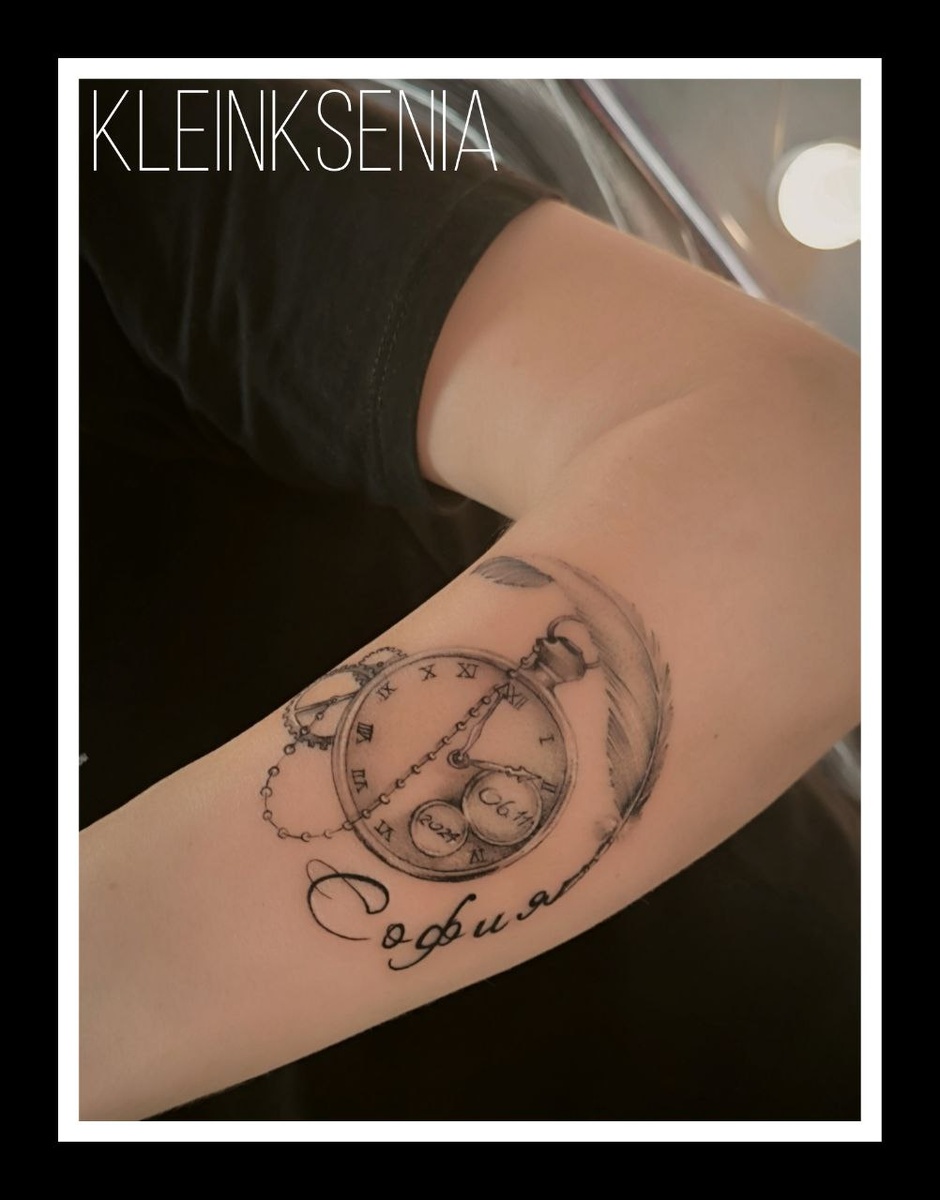 💖 Татуировка в честь доченьки Софии — вечная любовь в каждом штрихе 💖 Это не просто нательный рисунок — это история, застывшая в чернилах. Карманные часы с датой рождения — момент, когда мир перевернулся, а сердце стало биться в такт маленькому дыханию. Шестеренки — символ времени, которое теперь бежит иначе: в первых шагах, звонком смехе и нежных объятиях. А перо — словно страница из самой трогательной сказки, где каждая строчка написана любовью. София — долгожданное чудо, имя которого теперь навсегда вписано не только в сердце, но и в эту прекрасную работу. Пусть растет здоровой, окруженной теплом и заботой, а ее улыбка освещает каждый день ярче солнца. Мамочке — бесконечного терпения, сил и счастливых ночей (пусть их будет больше, чем бессонных 😉). Пусть материнство будет наполнено волшебными моментами, а эта татуировка станет еще одним напоминанием: вы создали маленькую вселенную любви. ✨ *P.S. Дети — это живые сны, которые сбылись. Берегите их.* #татуистория #татусмыслом #