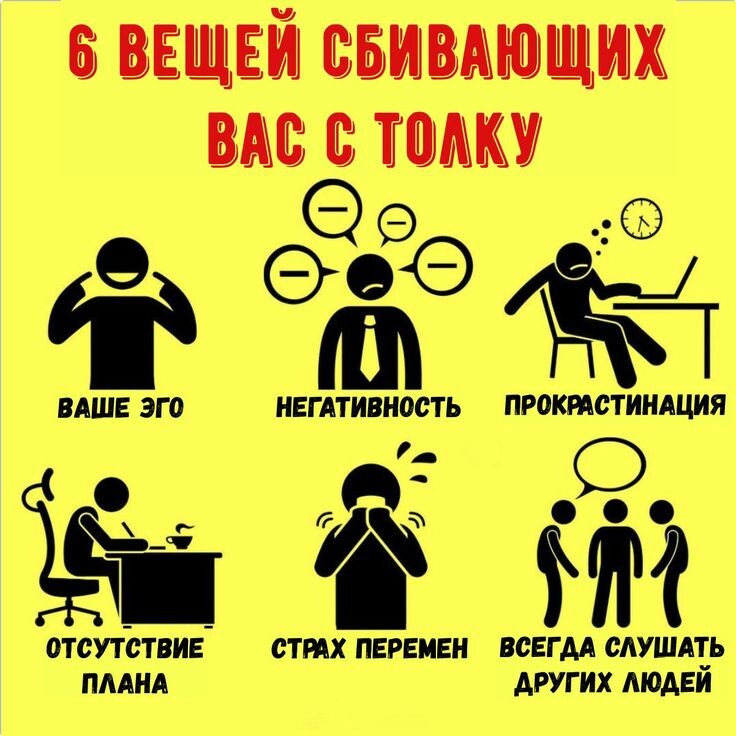 "Знакомый плакат? '6 вещей, сбивающих с толку'... Висит в Pinterest, телеграм-каналах, 'мотивационных' пабликах. Стоп! Этот список — не решение, а часть проблемы. Почему? Я прошёл этот ад в 2024. Рассказываю: ◆ ВАШЕ ЭГО: «Я должен быть идеальным!» → Завышенные ожидания → паралич действий. ✓ Правда: Разрешите себе быть 'уязвимым дураком'. Ошибка = опыт, а не катастрофа. ◆ НЕГАТИВНОСТЬ: «Всё пропало, мир жесток» → Вы притягиваете хаос как магнит. ✓ Взлом: Заведите дневник «3 плюса дня» (даже: «кофе был горячий»). Пишите 21 день — мозг переключится. ◆ ПРОКРАСТИНАЦИЯ: «Сделаю завтра» → Чувство вины → ещё больше прокрастинации. ✓ Метод: Ставьте таймер на 2 минуты. «Просто начни» — инерция сделает остальное. ◆ ОТСУТСТВИЕ ПЛАНА: Но! Жёсткий график = стресс. ✓ Фишка 2025: «Гибкие блоки». 3 главных дела дня + 4 часа «хаоса» для спонтанности. ◆ СТРАХ ПЕРЕМЕН: «А вдруг будет хуже?» → Застой. ✓ Приём: Представьте худший сценарий. Увольнение? Да, будет страшно... н