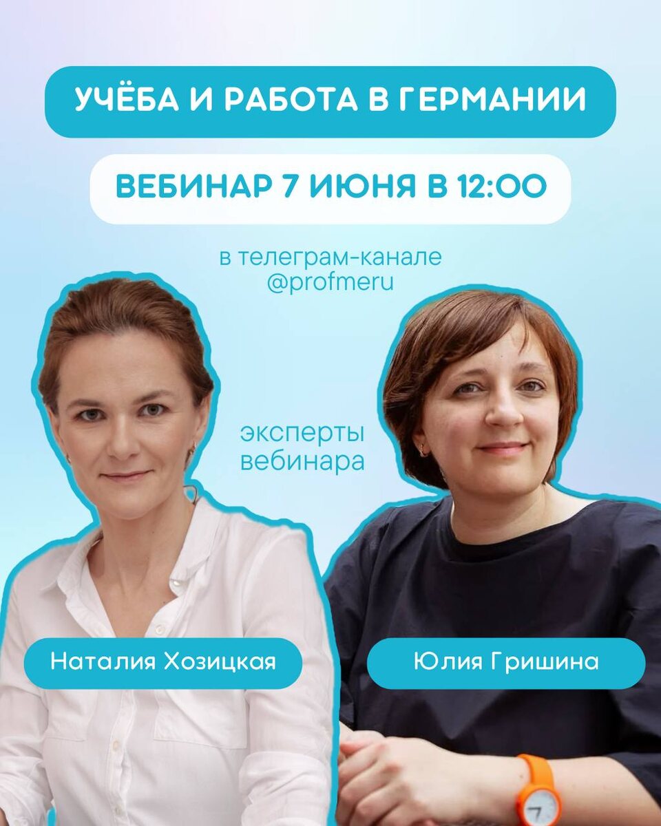 ➡️ Разберемся в этом на открытом вебинаре в эту субботу! В гостях у ProfMe Юлия Гришина, эксперт по образованию и трудоустройству в Германии, преподаватель в двух немецких университетах. Актуальные вопросы для нашей гостьи отберет и задаст Наталия Хозицкая, эксперт по выбору профессии и планированию карьеры проекта ProfMe.