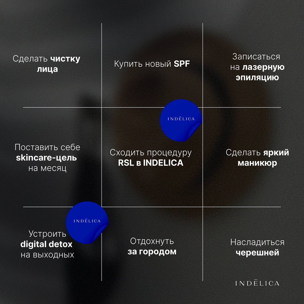 Бинго на июнь ☀️✨ Открываем новый сезон! Лето начинается, а значит, самое время добавить ярких моментов в каждый день. Сохраняйте карточку бинго, делитесь выполненными заданиями в комментариях, ставьте галочки и наблюдайте, как июнь становится насыщеннее с каждым днём 🌿 С заботой о вас, INDELICA 🤍