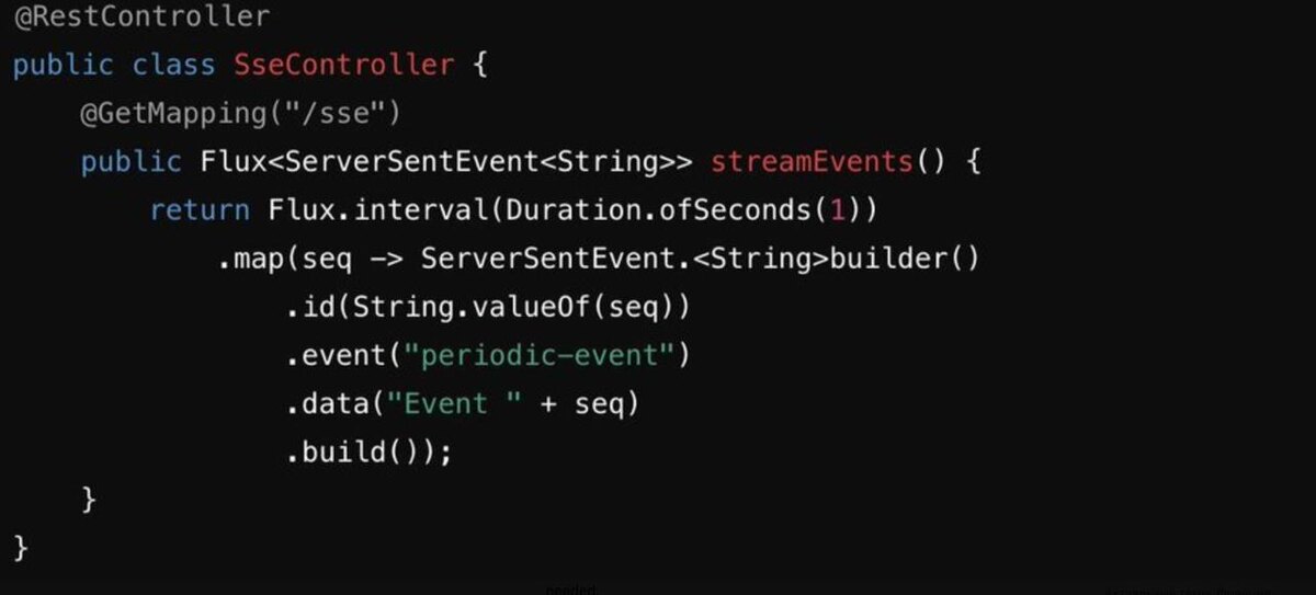 @GetMapping(value = "/sse-stream", produces = MediaType.TEXT_EVENT_STREAM_VALUE)