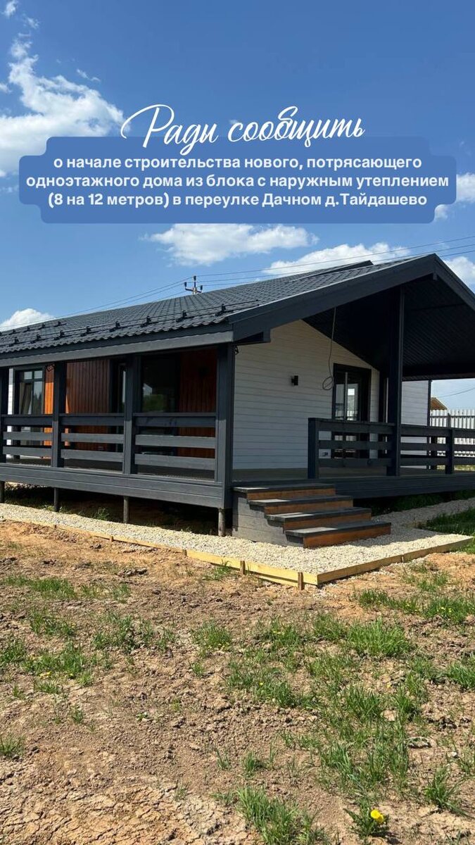 🏡 Рады сообщить о начале строительства нового, потрясающего одноэтажного дома из блока с наружным утеплением (8 на 12 метров) в переулке