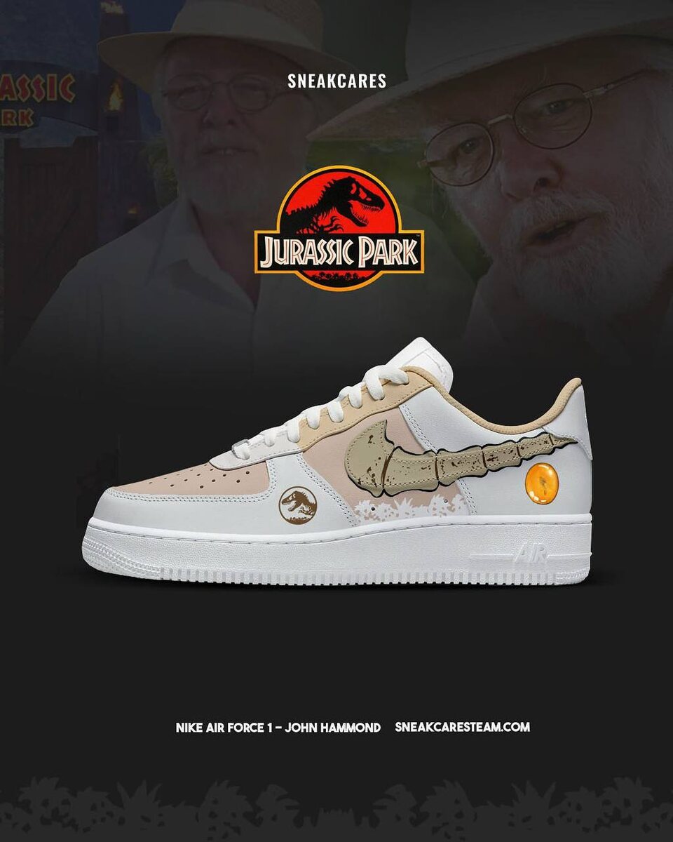 Ого, творческие ребята из Sneakcares показали свою версию Nike Air Force 1 к премьере Юрского периода с косточкой динозавра вместо свуша